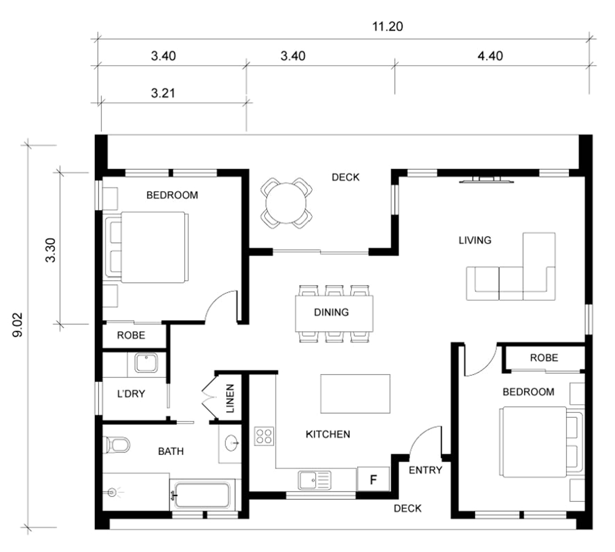 Standard features include an open-plan living and dining area that connects seamlessly to the outdoor deck, enhancing usability and airflow throughout the home. Both bedrooms are well-proportioned and positioned to ensure privacy and comfort. Built with Saltair’s durable and energy-efficient modular construction system, the Coolum 213 delivers long-lasting performance and full compliance with NCC and council requirements.