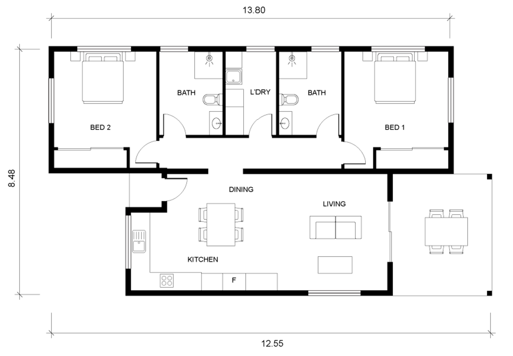 Standard features include an open-plan living and dining area that flows naturally onto the outdoor deck, enhancing light, airflow and usable space. Both bedrooms are well-positioned for privacy, with the master enjoying access to its own ensuite for added convenience. Built with Saltair’s durable and energy-efficient modular construction system, the Hervey 222 ensures long-term performance and compliance with NCC and council requirements.