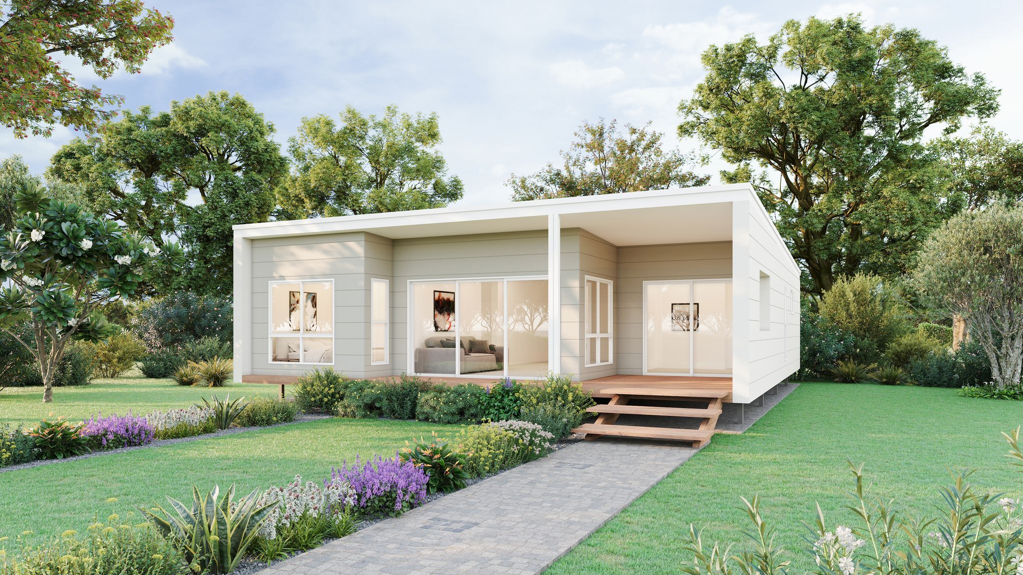 Includes a large open-plan living zone that extends seamlessly to the expansive outdoor deck, creating a perfect environment for relaxation and entertaining. All three bedrooms are well-sized and positioned for privacy, with the master enjoying direct access to its own ensuite. Constructed with Saltair’s durable and energy-efficient modular building system, the Kingfisher 323 ensures longevity, comfort, and compliance with all NCC and council requirements.