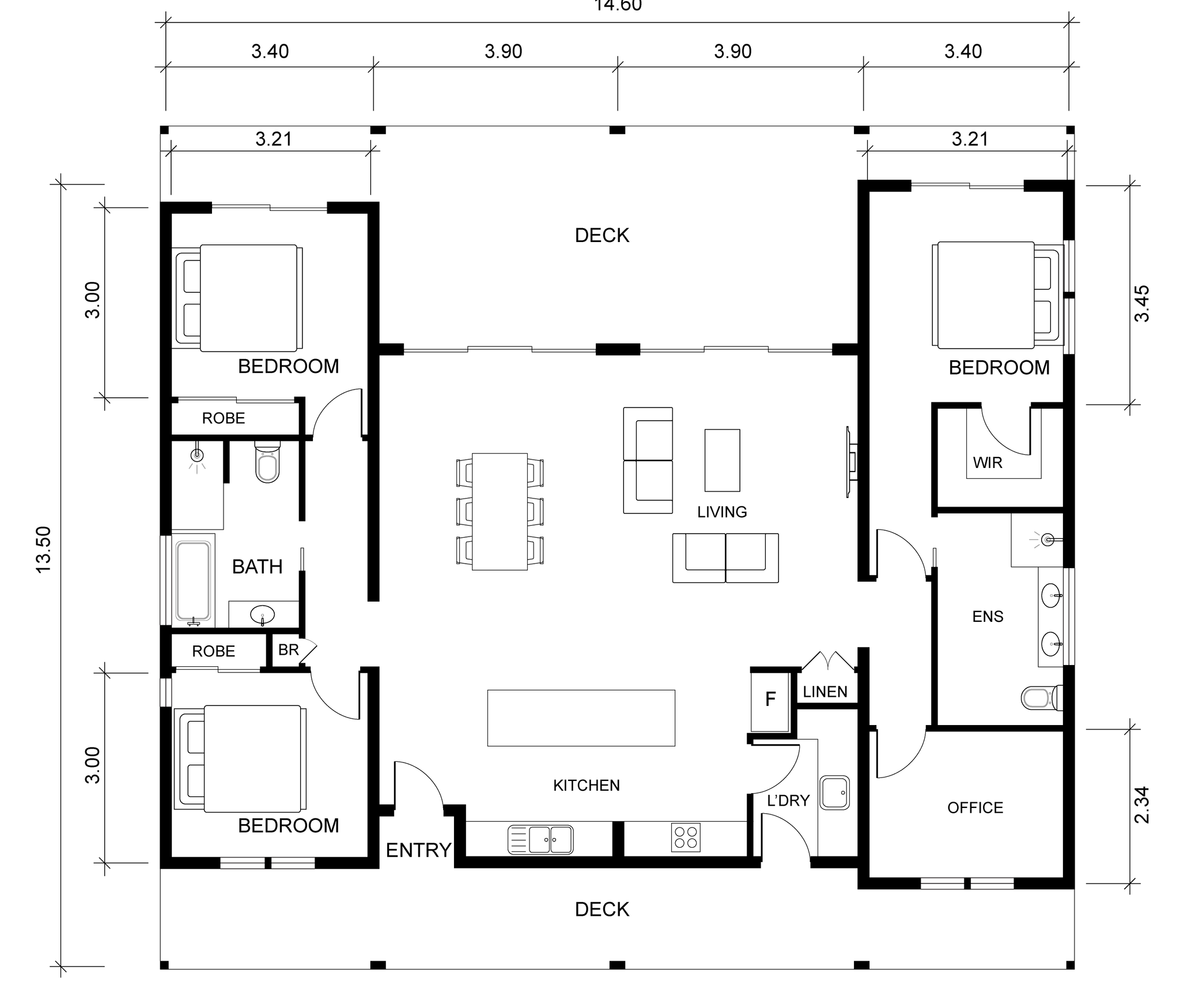 Standard features include a generous open-plan living and dining zone that flows seamlessly to the large outdoor deck, creating an inviting environment for entertaining or relaxation. All four bedrooms are well-sized and arranged for privacy, with the master suite positioned for comfort and retreat. Built with Saltair’s durable and energy-efficient modular construction system, the Noosa 424 ensures long-lasting performance and compliance with all NCC and council requirements.
