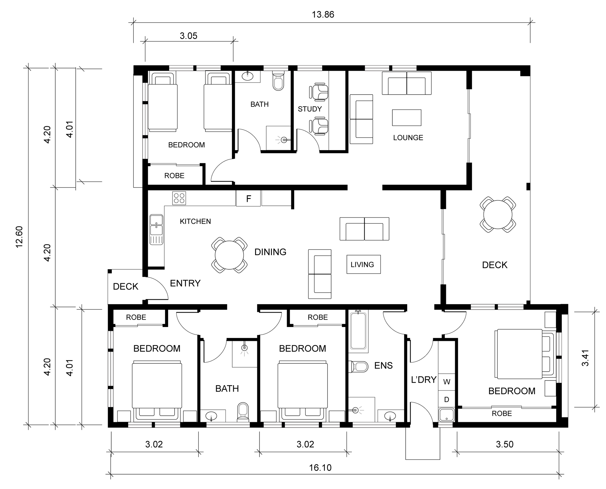 Apacious open-plan living and dining area that opens directly onto the extensive outdoor deck, enhancing natural light and year-round usability. All four bedrooms are well-proportioned, with smart zoning that offers privacy and comfort for families or guests. Built with Saltair’s robust, energy-efficient modular construction system, the Whitehaven 433 ensures durability, long-term performance and full compliance with NCC and council requirements.