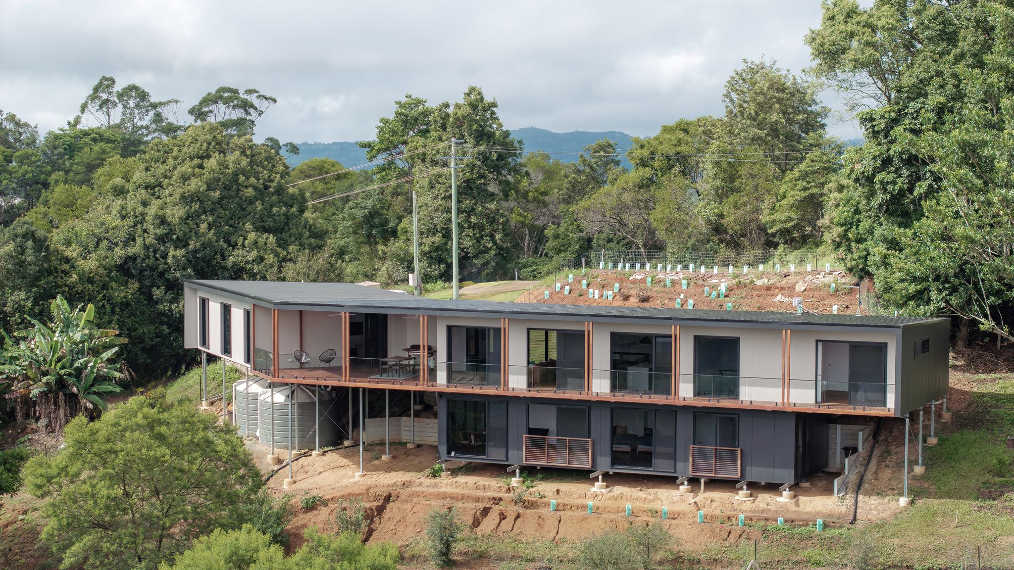 Nestled high in the hinterland, this stunning split-level modular home was designed to follow the natural contours of the sloping block while maximising panoramic views. With a unique layout and innovative module shapes, this project is a testament to how modular construction can offer bespoke, high-end results in challenging locations.