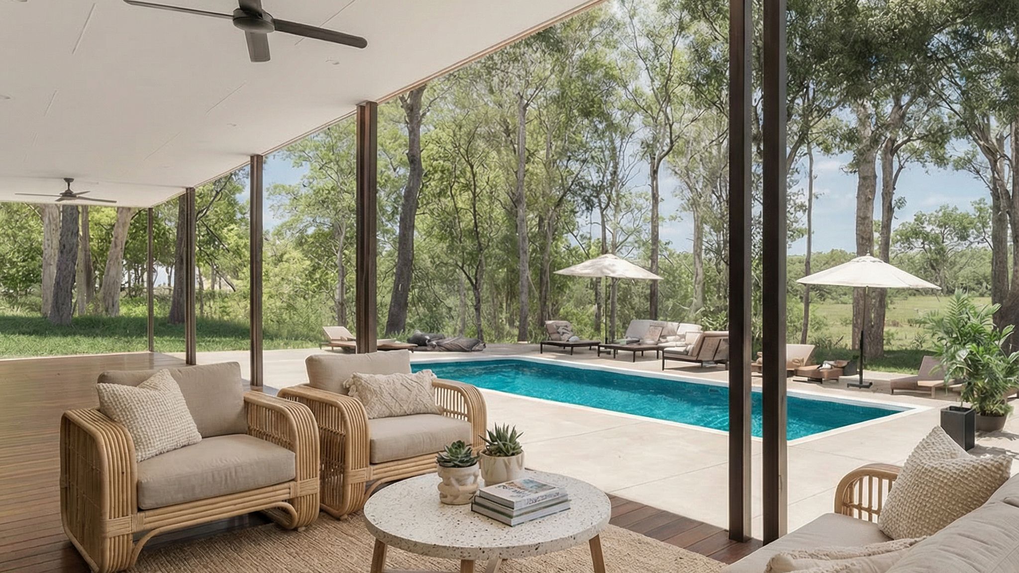 With uncomplicated site access and a streamlined installation, the delivery process was efficient and controlled. The finished home sits confidently within its setting - a refined hinterland residence defined by longevity, comfort, and understated luxury.